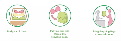 - Go to one of our Boutiques / Direct Sales Branch and ask our BA / DS Staff for a Bra Recycling Bag - each bag can contain approximately 4 bras.